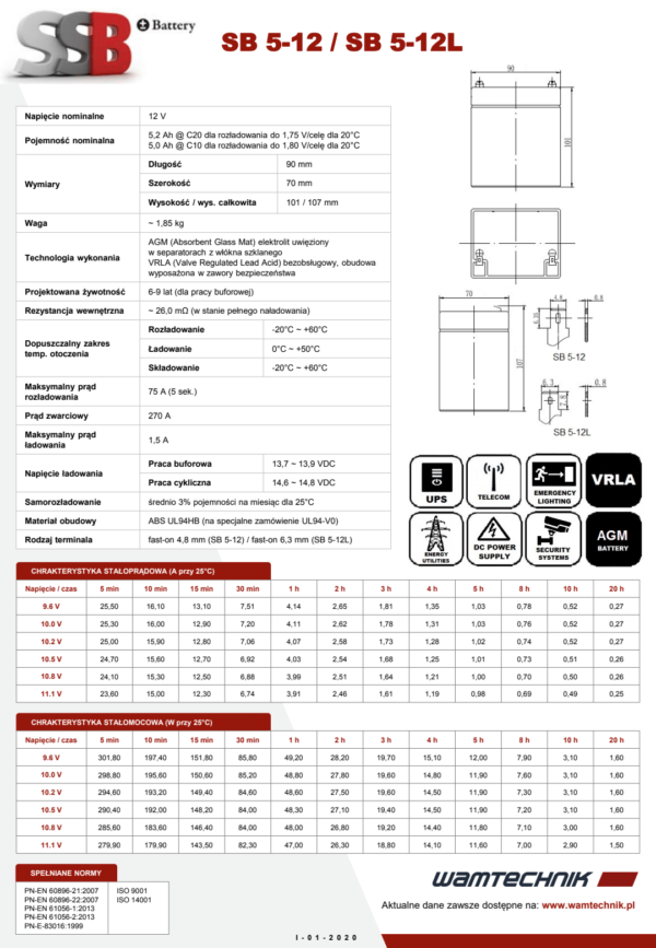 • Typ: AGM VRLA , szczelny akumulator kwasowo-ołowiowy