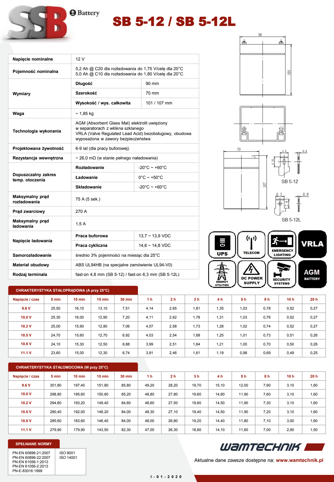 Akumulator SSB SB 5-12L AGM 5Ah 12V 6-9 lat