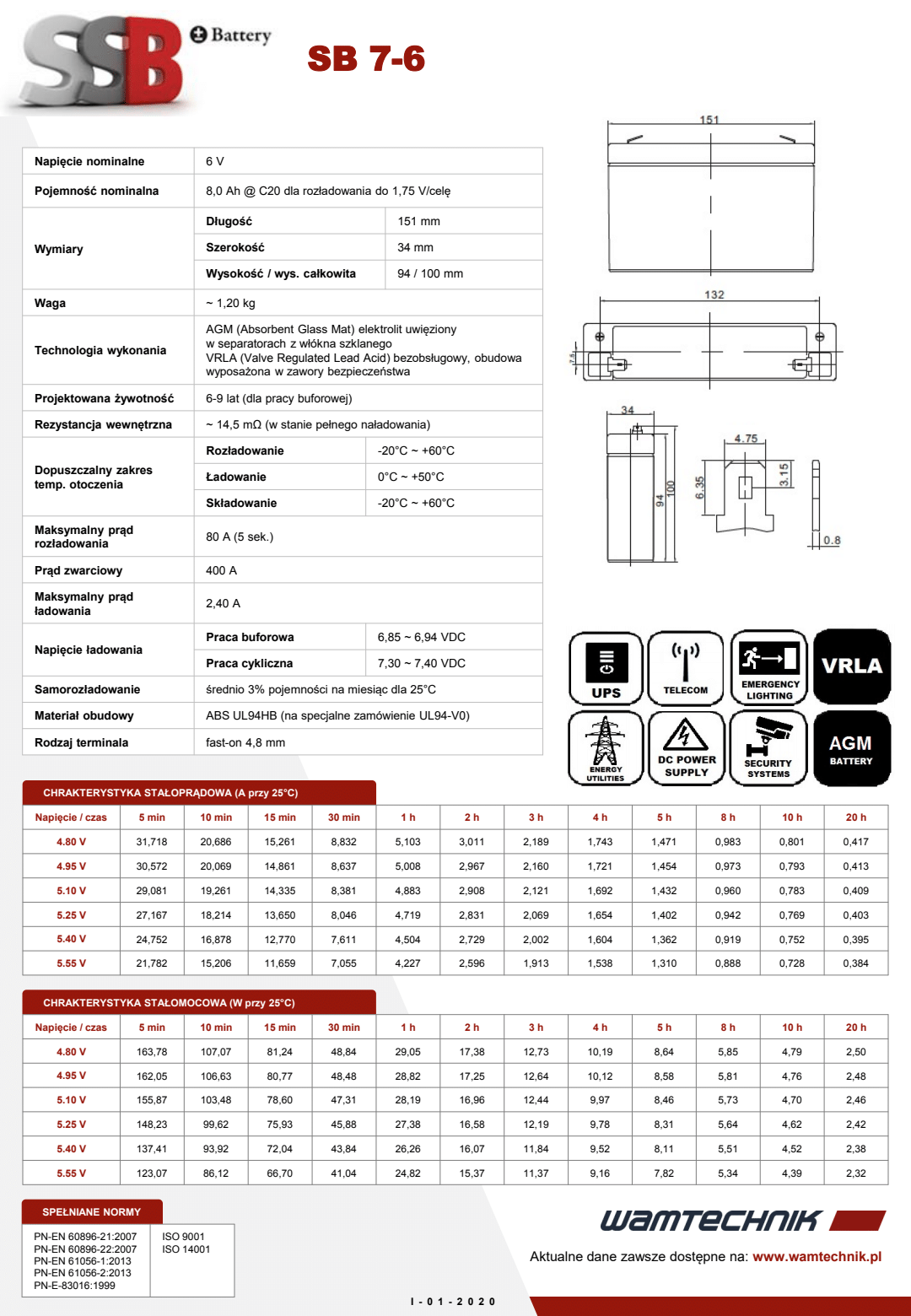 • Typ: AGM VRLA , szczelny akumulator kwasowo-ołowiowy