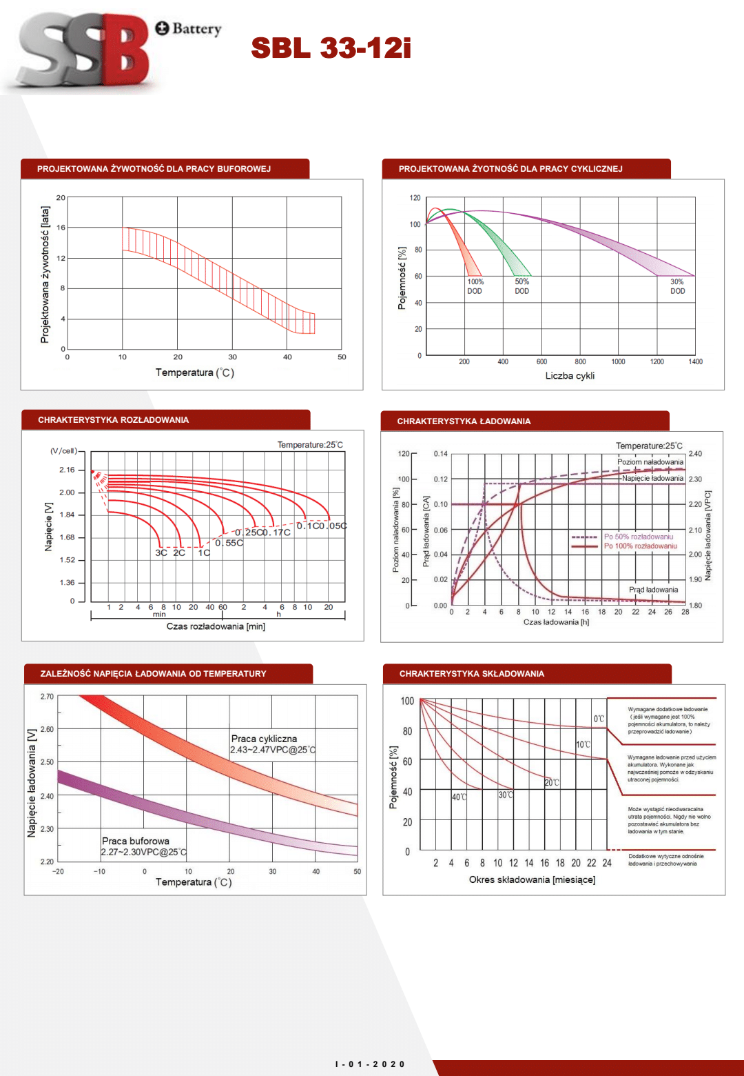 Projektowana żywotność akumulatorów SSB z serii SBL dla pracy buforowej wynosi do 12 lat. Akumulatory SSB SBL sprawdzają się w wielu dużych instalacjach, co potwierdza ich wysoką jakość i powtarzalność parametrów.