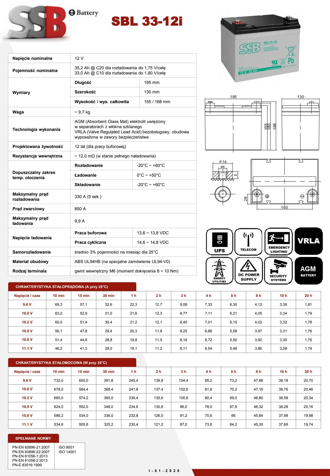 • Typ: AGM VRLA , szczelny akumulator kwasowo-ołowiowy