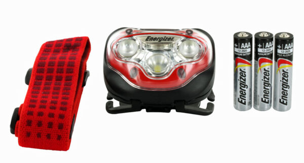 Zasilanie – 3 baterie AAA LR03 (w komplecie 3 baterie alkaliczne wysokiej jakości Energizer MAX) pozwalają na działanie latarki przez 4 godziny non-stop w trybie pełnej jasności 300 lumenów i nawet do 35 godzin w trybie oszczędnym 45 lumenów.