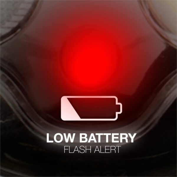 Latarka sygnalizuje niski poziom naładowania baterii przez miganie czerwonej diody