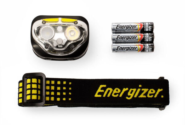 Zasilanie – 3 baterie AAA LR03 (w komplecie 3 baterie alkaliczne wysokiej jakości Energizer MAX) pozwalają na działanie latarki przez blisko 3 godziny godziny non-stop w trybie pełnej jasności 450 lumenów i nawet do 50 godzin w trybie oszczędnym 35 lumenów.
