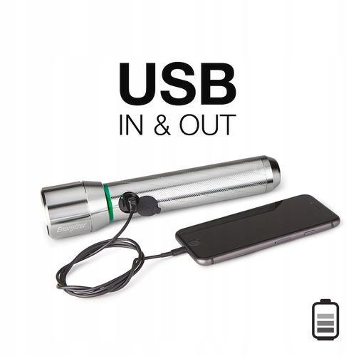 Wyjściowy port USB: Dzięki wyjściowemu portowi USB latarka działa także jako powerbank, co pozwala na ładowanie np. telefonu