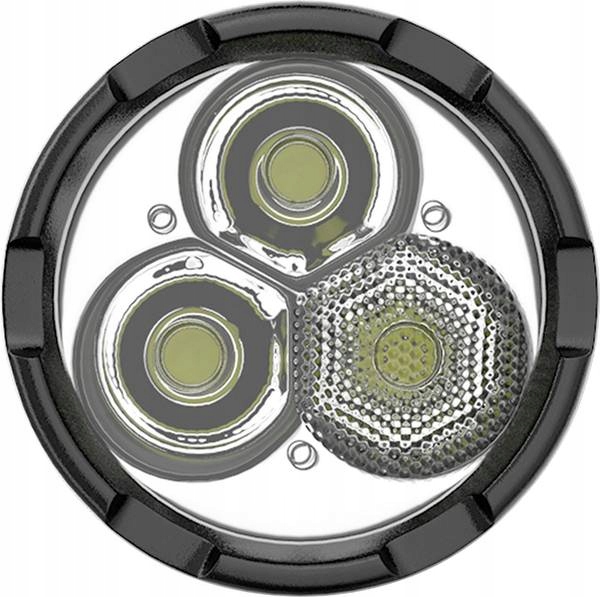 3 silne diody LED zapewniają 1000 lm światła i zasięg 200 metrów